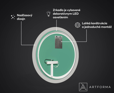 Zrkadlo je vybavené dekoratívnym LED osvetlením. Jemne osvetľuje zadnú časť zrkadla a osobu, ktorá pred ním stojí.
